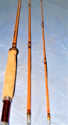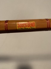 3 pc 9 foot comfort grip handle 3 piece rod with 1 tip. South bend bamboo fly rod model 47. 9 foot long downlocking reel seat. Comfort grip cork handle south bend label is near complete 7 wire snake guides including the tip tops.